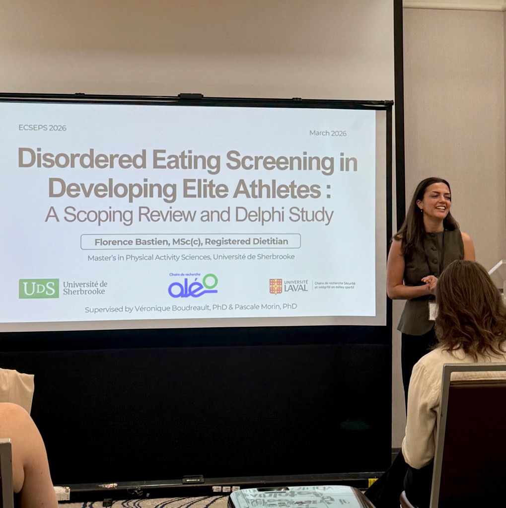 - Dans le cadre de ma maîtrise, je fais actuellement un projet de recherche en lien avec le dépistage des troubles des conduites alimentaires chez les jeunes athlètes.